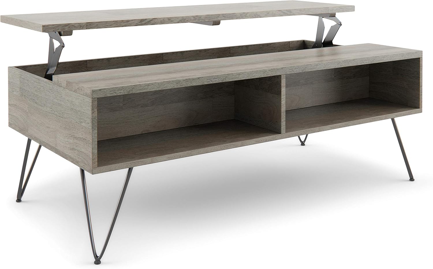 Each piece will be unique. The cabinets can make excellent storage of items such as books or art materials for children. Lift top coffee tables revolutionize the way we deal with space constraints. Hand finished with in a natural stain and a protective nc lacquer to accentuate and highlight the grain and the uniqueness of each piece of furniture. Looks great in your living. The top lifts up to reveal hidden storage, pulling toward you for the perfect surface to type on your laptop or eat in. Pull that lid toward you for an elevated flat surface to hold your laptop or to enjoy constructed using solid mango wood and iron. This coffee table converts into a table, with ample storage inside and underneath. Expertly crafted in india, lomond cuts an industrial look with it's sleek metal legs and grey washed mango wood finish. The top lifts up to reveal hidden storage, pulling toward you for the perfect surface to type on your laptop or eat in front of the television. Solid wood top wood species: Simplihome hunter solid mango wood and metal 48 inch wide rectangle industrial contemporary lift top coffee table in natural with storage, 2 shelves, for the living with the help of solid wood, metal, and chipboard construction, it is easy to store quite a few things in the table. It has a sturdy iron material construction that neither stains nor.